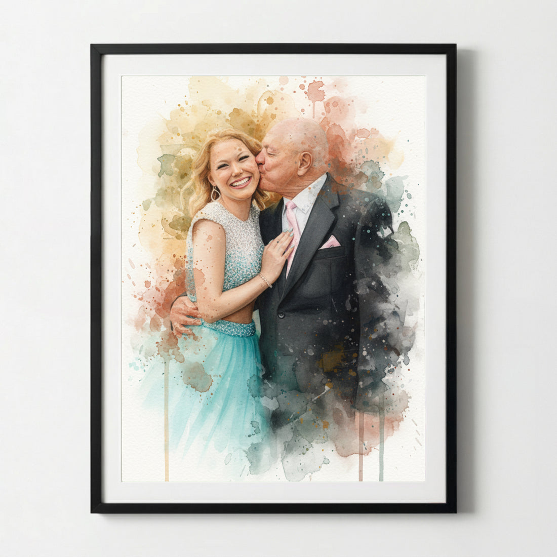 Cadeau pour la fête des pères - Votre photo en aquarelle - Un cadeau personnalisé pour papa et papy